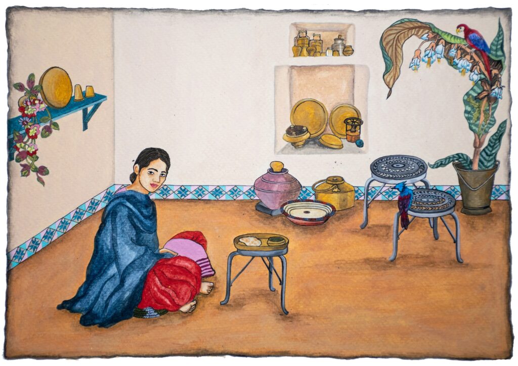 The tarpai and paintings by Pooja Acharya showing the use of vernacular furniture are on display in our latest exhibition, ‘Collections, Collaborations, Contexts: Stories of vernacular furniture and everyday objects from north-west India’. They will also feature in the forthcoming publication, Smarya: Vernacular furniture of Punjab and Haryana co-authored by our curator Mansi S Rao, Ben Cartwright, Jay Thakkar, and Abhishek Ruikar.